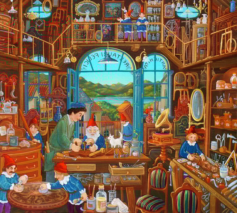 Ogni quadro è una storia che prende vita tra pigmenti preparati a mano, simboli nascosti e atmosfere sognanti.